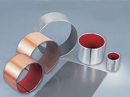 SF-1系列金屬?gòu)?fù)合無(wú)油潤(rùn)滑軸承是以優(yōu)質(zhì)低碳鋼為基板,中間燒結(jié)球形多孔青銅粉層,表面軋制PTFE為主的潤(rùn)滑材料,后經(jīng)卷制加工而成。這種軸承具有優(yōu)異的潤(rùn)滑性和良好的承載能力,中間銅粉層提高了塑料層與基板的結(jié)合強(qiáng)度,同時(shí)也及時(shí)傳遞了軸承運(yùn)行過(guò)程中產(chǎn)生的熱量。根據(jù)各種不同的使用要求我們相續(xù)開發(fā)了多種材料來(lái)滿足各種不同的使用條件。 SF-2系列金屬?gòu)?fù)合邊界潤(rùn)滑軸承是以優(yōu)質(zhì)低碳鋼為基板,中間燒結(jié)球形多孔青銅粉層,表面軋制改性聚甲醛(POM)為主的潤(rùn)滑材料,并設(shè)有儲(chǔ)油坑。它能夠有效提高儲(chǔ)油量減少加油頻次,同時(shí)還可以埋沒(méi)外部入侵的粉塵,延長(zhǎng)軸承的使用壽命。中間的銅粉層提高了塑料層與基板的結(jié)合強(qiáng)度,同時(shí)也及時(shí)傳遞了軸承運(yùn)行過(guò)程中產(chǎn)生的熱量。該軸承適用于油脂潤(rùn)滑工況。